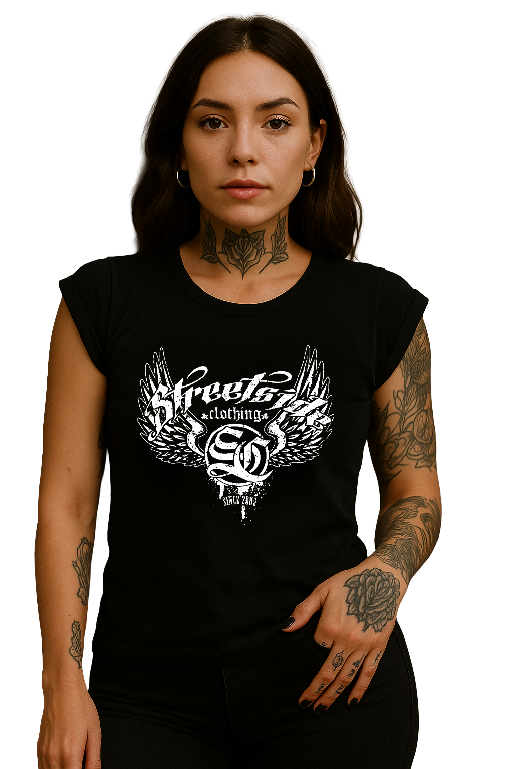 Dieses Girls-Shirt verbindet Style, Stärke und Street-Attitude in einem cleanen, aber kraftvollen Design. Das große Winged-Streetside-Logo sorgt für maximalen Impact: majestätische Flügel, geschwungene Letterings und das ikonische SC-Emblem – ein Motiv, das gleichzeitig feminin, rebellisch und selbstbewusst wirkt.